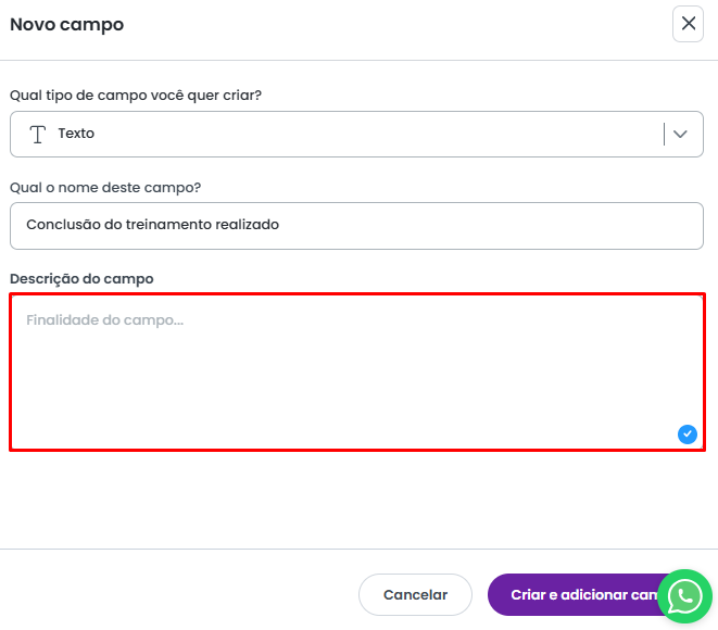 Ao final,teremos a descrição do campo, onde é possivel descrever a finalidade do campo.