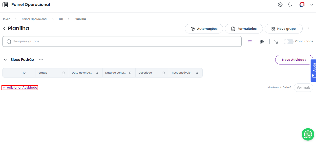 Dessa forma, uma nova atividade será adicionada a grid do grupo.