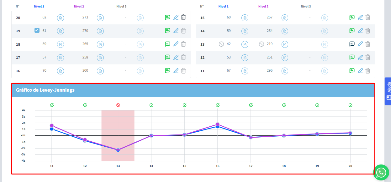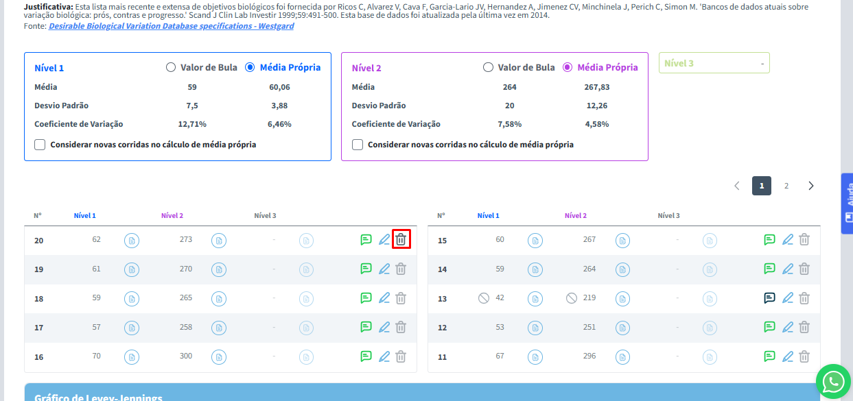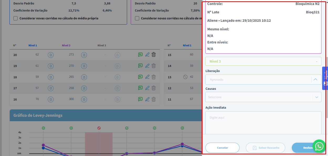 Ao final da tela, o usuário poderá visualizar o Gráfico de Levey-Jennings.