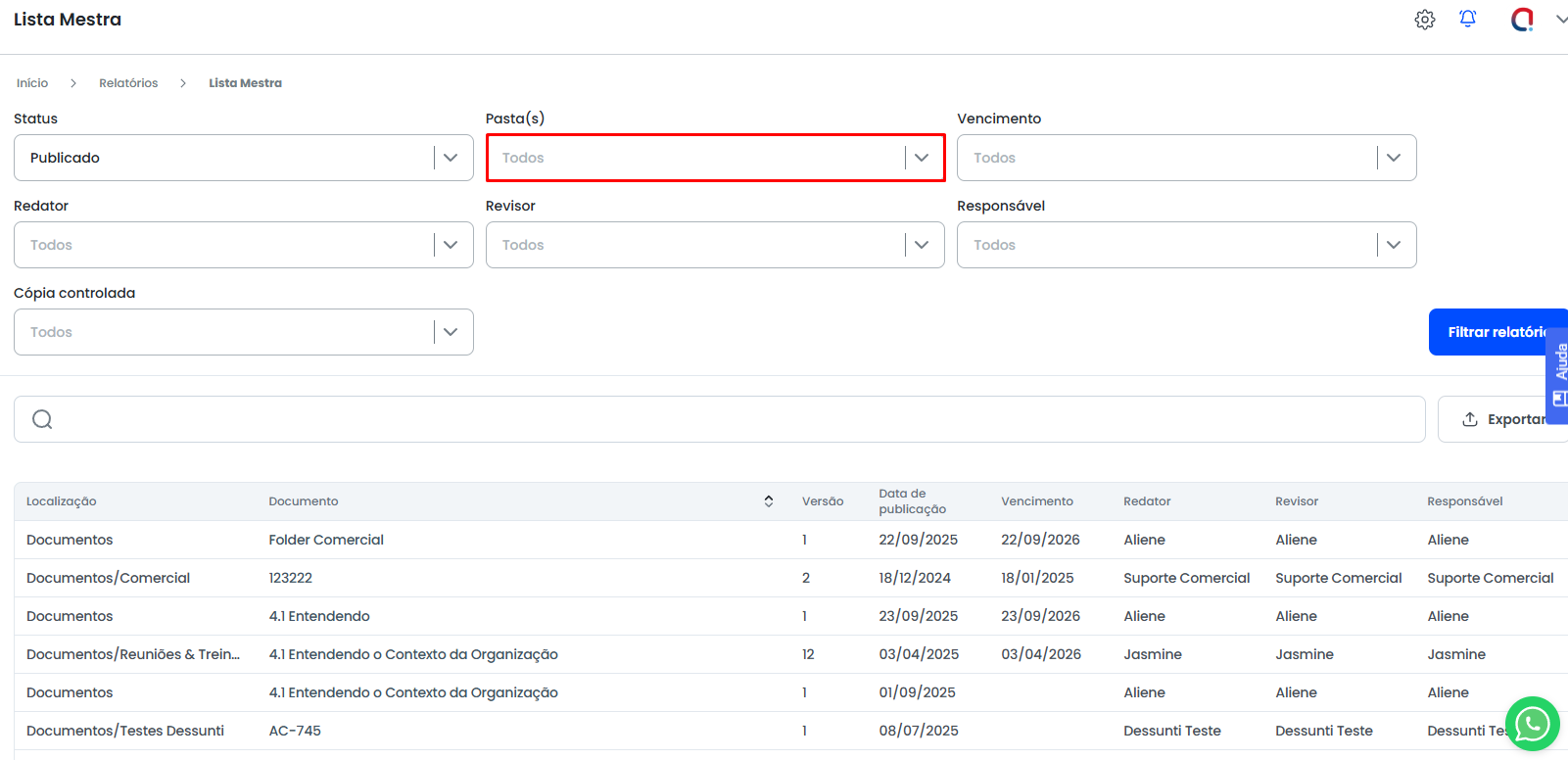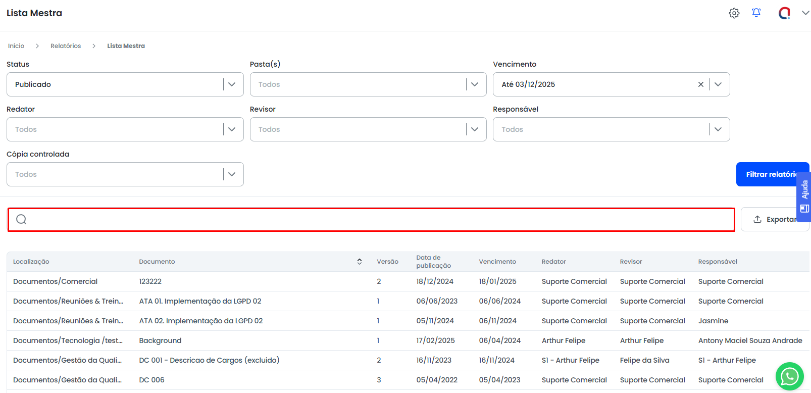 A Lista Mestra é uma ferramenta essencial que contém todos os documentos registrados, excluindo apenas aqueles que estão obsoletos. Esta lista é gerada automaticamente pelo sistema conforme os documentos são cadastrados e atualizados.
