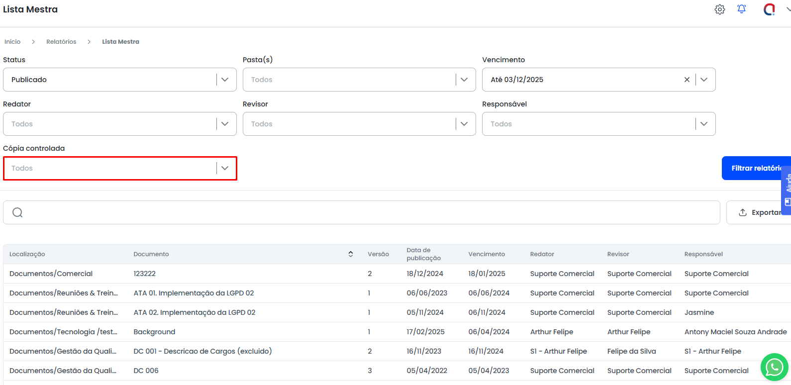 Além disso, é possível filtrar para exibir apenas os documentos que possuem cópia controlada.
