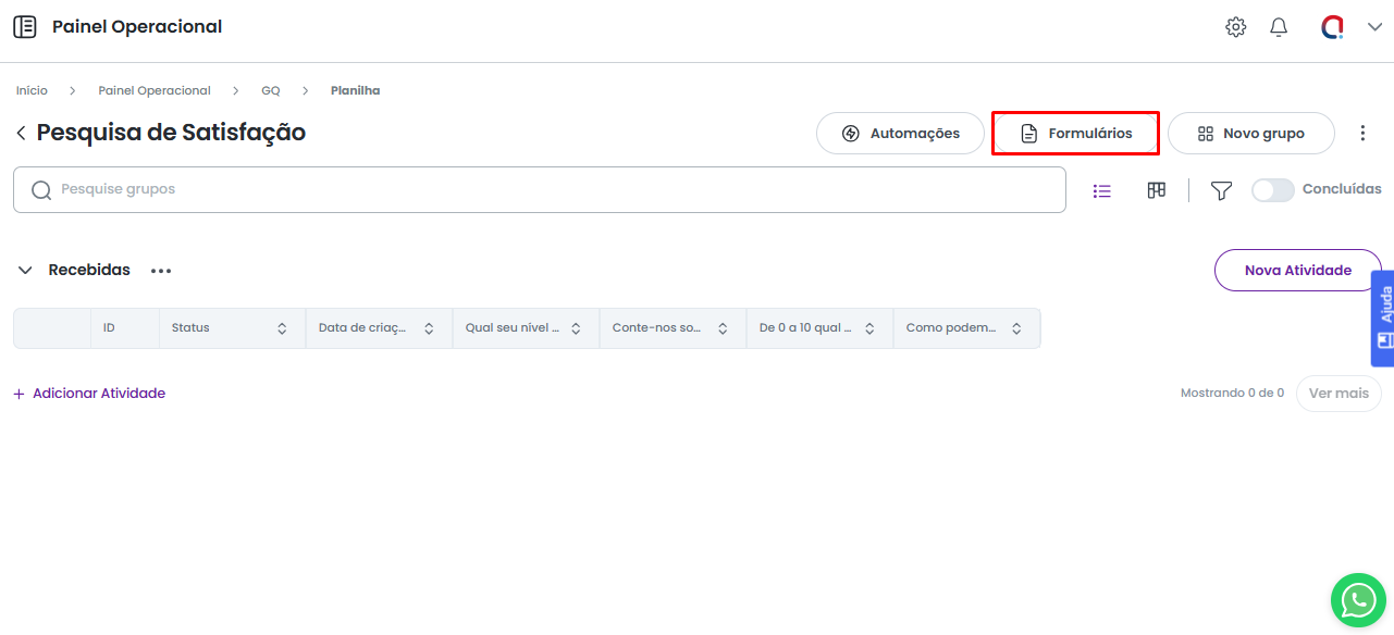 Você também pode consultar a quantidade total de atividades que foram criadas a partir daquele formulário específico.