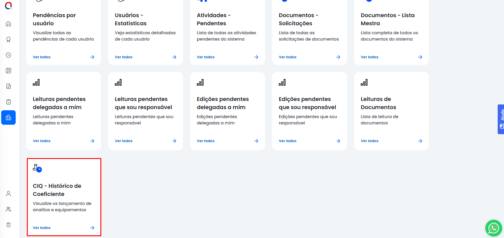 O relatório CIQ - Histórico de Coeficiente de Variação (CV) é gerado automaticamente pelo sistema, à medida que os controles são atualizados. Através do relatório de CV mensal, é possível obter informações valiosas sobre o desempenho analítico do laboratório ao longo do tempo.
