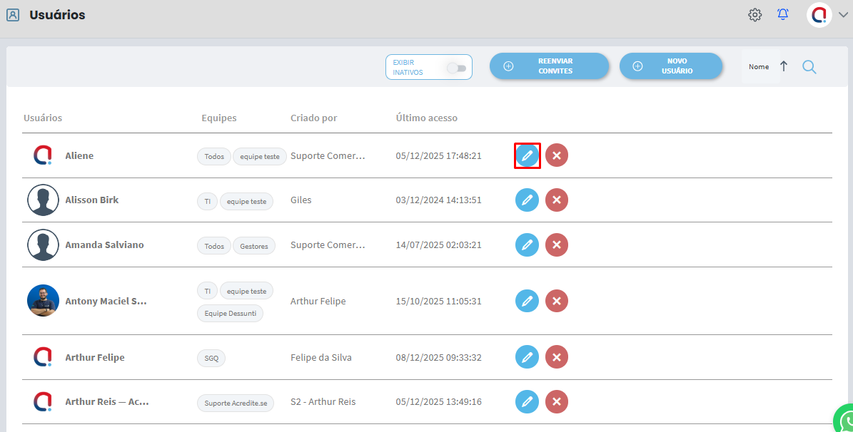 Para iniciar a migração, primeiramente, é necessário acessar a tela de edição do usuário que atualmente detém a responsabilidade.
