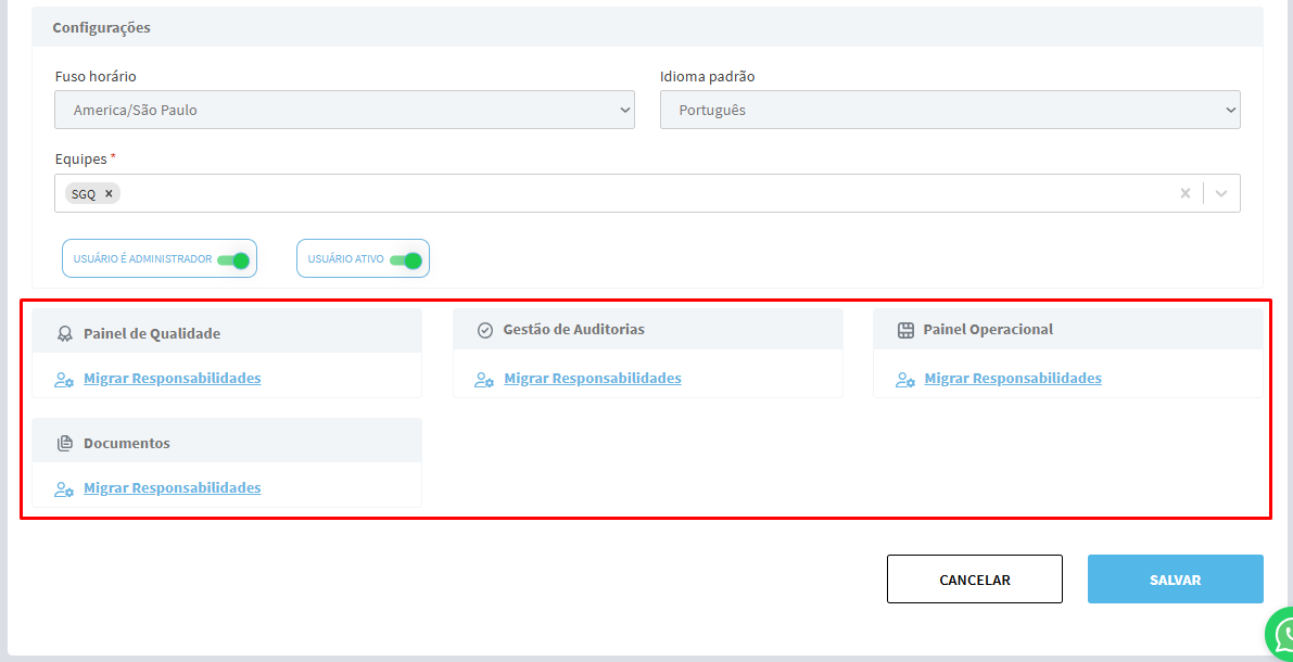 - Migrar todos: Irá migrar todas as responsabilidades do usuário.