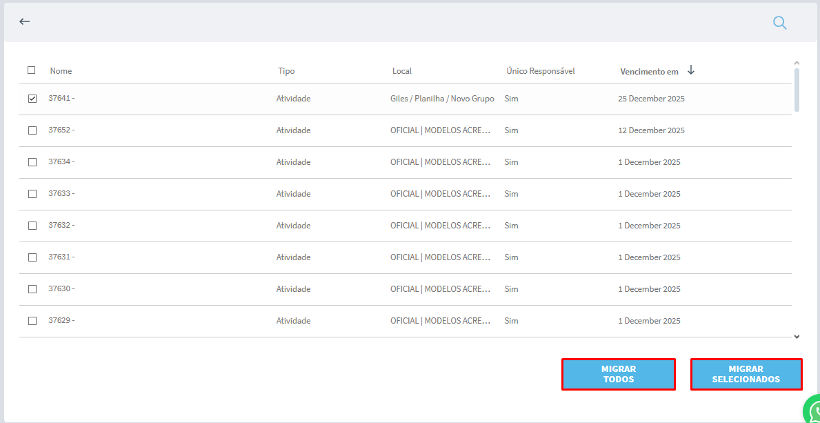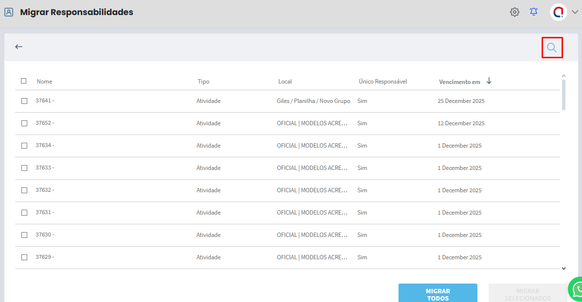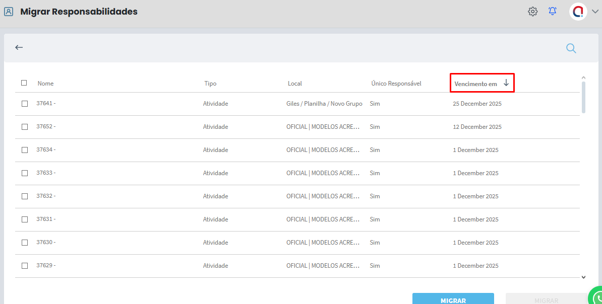 - Migrar Selecionados: Irá migrar apenas as responsabilidades que você selecionou.