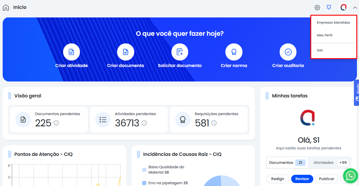 Em Perfil, é possível alterar as informações do seu perfil, visualizar as empresas atendidas e sair do sistema.