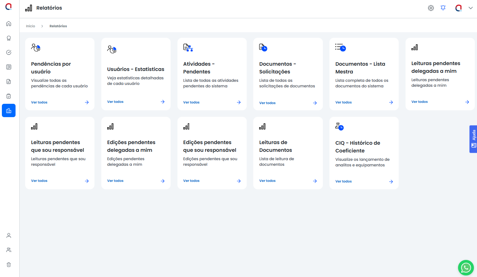 O menu Relatórios é uma ferramenta essencial para o controle e gerenciamento de informações e atividades no sistema, oferecendo uma visão abrangente do status dos documentos e das pendências dos usuários.