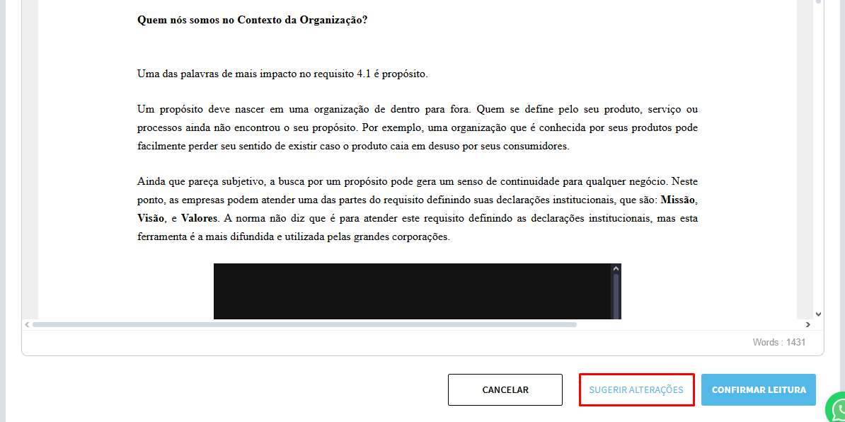 A opção Sugerir alterações, localiza na parte inferior do documento, pode ser utilizada pelo usuários do sistema para realizar a sugestão de alteração de algum documento.
