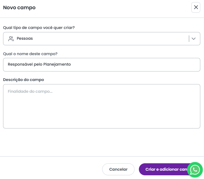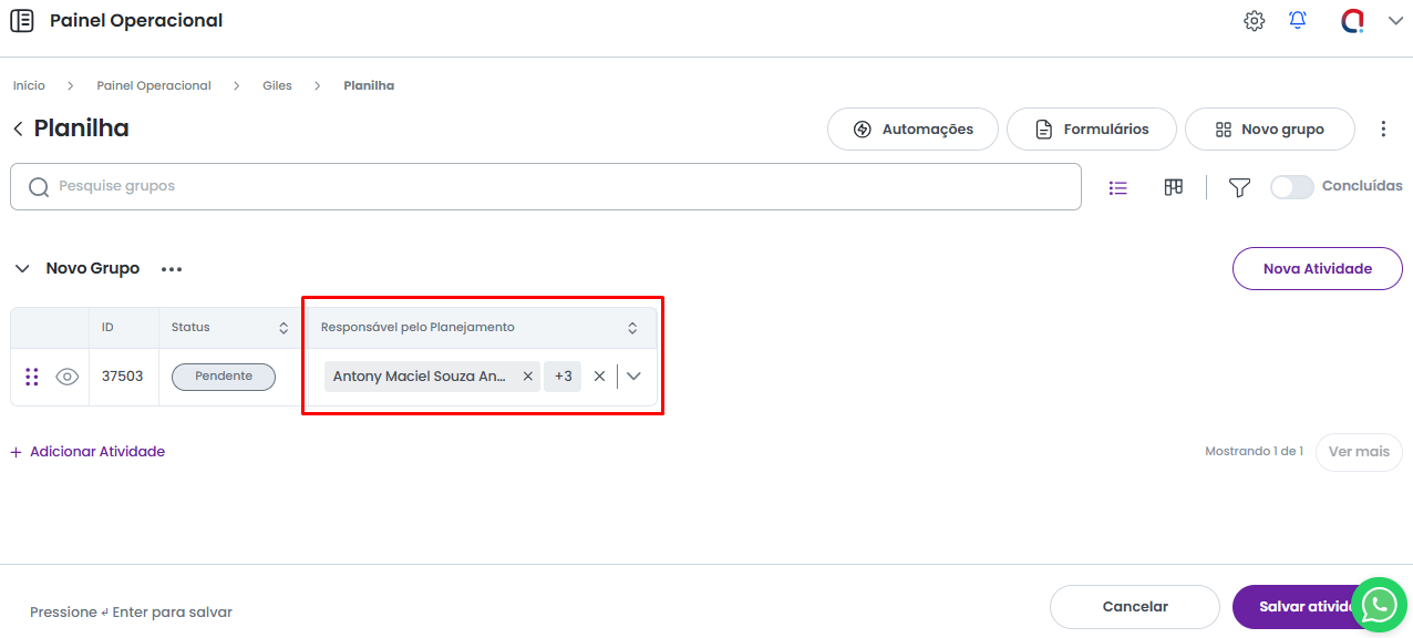 O campo do tipo Pessoas permite que você associe um ou mais usuários à atividade.