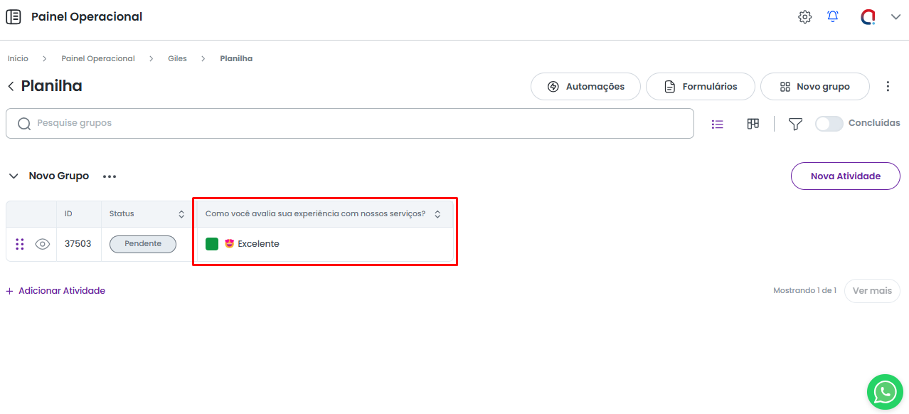 Dessa forma, o sistema irá realizar o cálculo do valor automaticamente, assim que todos os campos da atividade definidos na fórmula forem preenchidos.